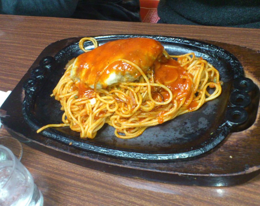 みんなが美味しいといってたハンバーグスパゲティを注文。