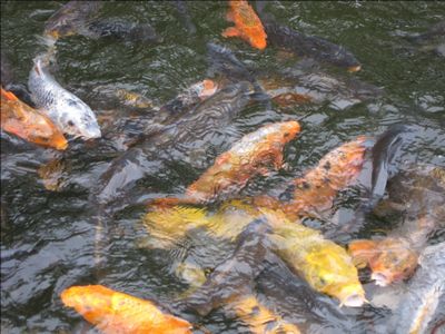 池に鯉がいて餌を撒いたら