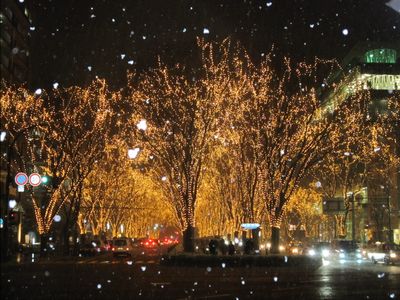 周りが綺麗にライトアップされた中で一本だけ寂しそう・・・・