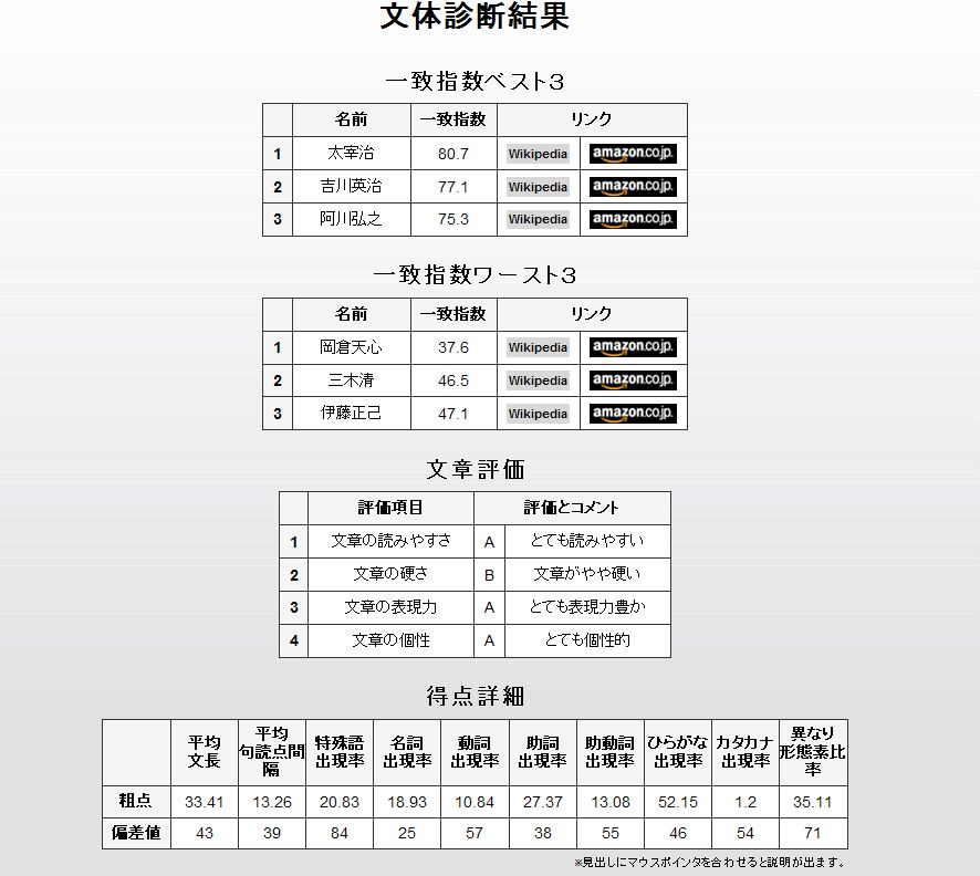 一番一致してるのが太宰治とかwwwwwwwwwww