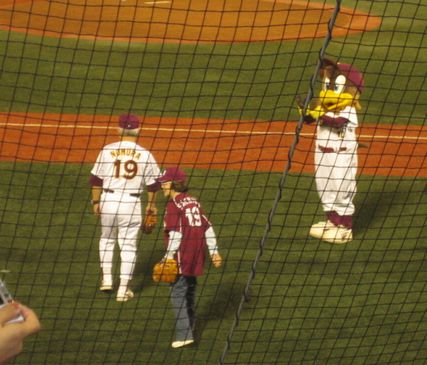 始球式はサッチーが投げて、野村監督がキャッチャーでした(爆)