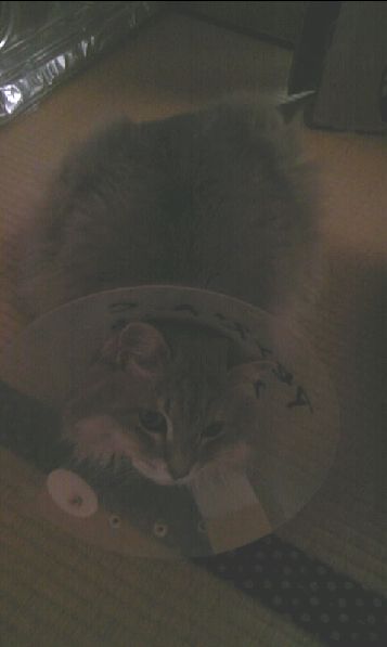 包帯巻かれて、エリザベスカラーつけられて帰宅しました。