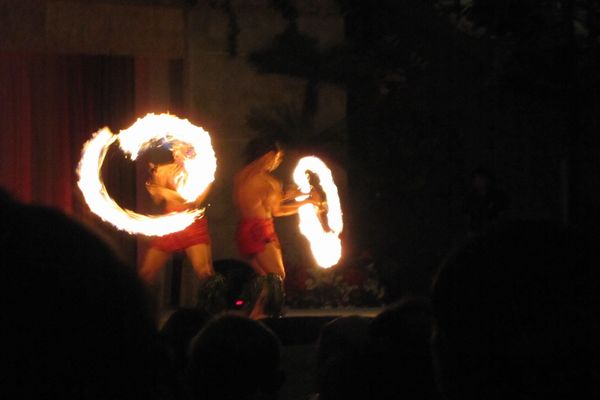 炎のショーもありまして。何で彼らはやけどしないんだろう・・・