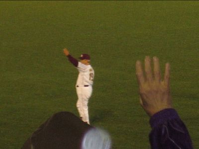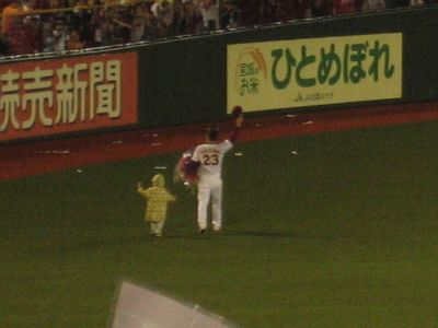 試合後に何かあるかなと前のほうへ行ってみたけど、