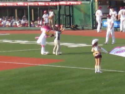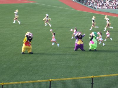 試合終了後、謎のゆるキャラがグリーティングしてた(爆)