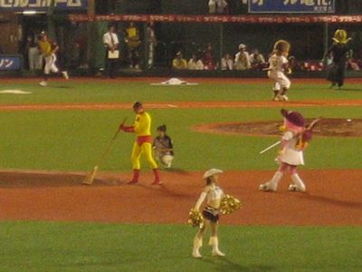 謎の↑変な人がグラウンド整備に出てきてるし。