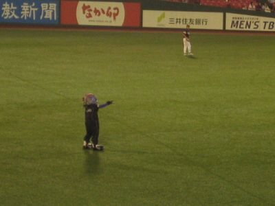 カラスコが投げたボールをソフトバンクの選手が後逸(爆)