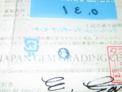 今日買ったルース。鑑別書ついてるアクアマリン。