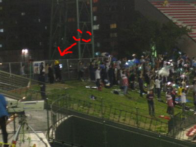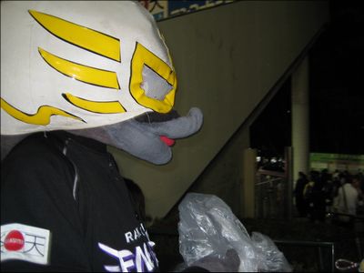 今日はマジカルナイター!ってことで、正面広場ではクラッチ達がマジックショーをやってました。クラッチは昨年のファン感謝祭でもマジックやってたっけ?もしかして得意技なのかしら。司会のおねーさんがなんでサイボーグ009の服装なのかとか、後ほど聞こえてきたバックミュージックが何で銀河鉄道999なのかは、ちょこっとしか見れなかったわたくしには謎でございます。