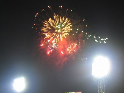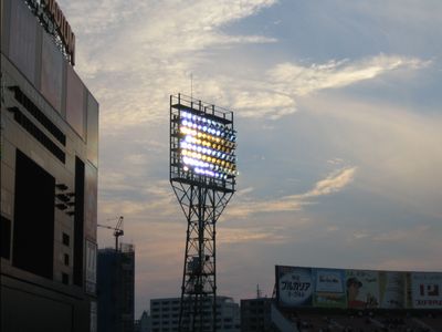 同点になった時に、よーしこっからだ!と喜んでたら、また3点取られて突き放される(^^; そのまま9回突入!もう駄目だーと思いつつもがんばれーと応援してたら、ランナー一人置いて2アウトでフェルナンデス。ツーランホームラン、ホーセ!と応援が始まる。思わず「走んなくていいようにたたっこめー」とか言ったら、その直後にほんとにツーラン(爆)びっくりしました。(注・フェルナンデスはたまに、打った時に一塁まで全力疾走しないのです)