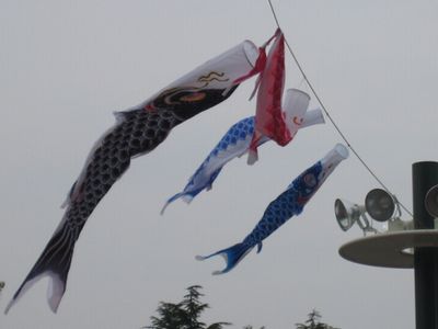 昨日がこどもの日だからでしょうか、球場正面近くにこいのぼりが泳いでます。