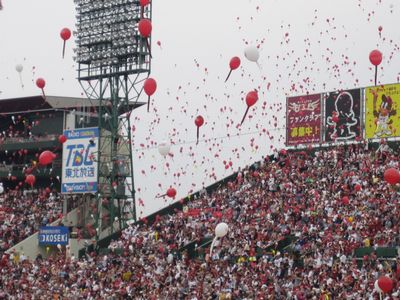 9回物凄く盛り上がって、結局追いつけなくて残念だったけれど、最後にスコアボード下の所にいつものゴミ拾いスタンバイしているカラスコがちらっと写って、ああ今日も頑張ってるなぁと微笑ましくなって。負けた悔しいのもどこかに行くほど和んでいたら、深夜になってファンの人のブログを見てたら酷い話を聞きました。
