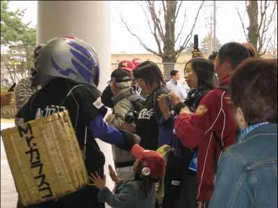 いつもよりなんかゆっくりとゴミ拾いのカラスコ。デーゲームで時間があるからかな?それでもたくさんの追っかけを引き連れてゆっくり移動。