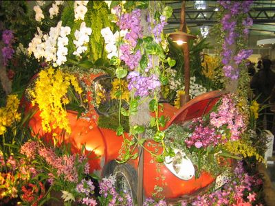 会場入って右手の方に、蘭を寄せ植えした大きな作品が並びます。