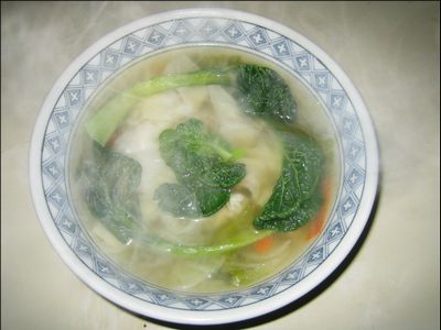 本日の夕食はワンタンスープ。