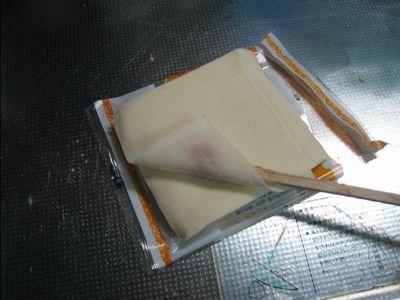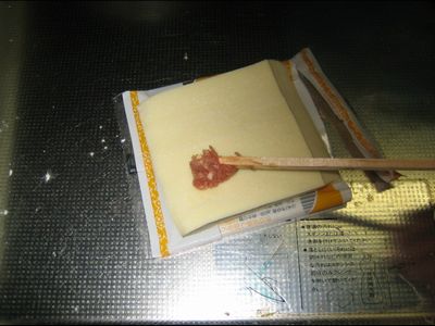バットに片栗粉を薄く引く。割り箸を半分用意する(爆)