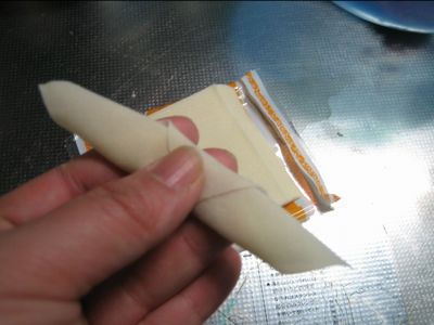 あんまりギュッと折ると皮が破れてしまうので優しく。