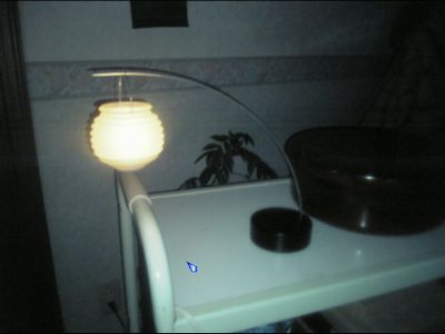 手押しワゴンの上であれなんですが(爆)月明かり、というタイトルのキャンドルホルダーです。写真だとイマイチですが、実際に見るとぼんやりした温かい灯りがほんとに月明かりのようで綺麗なんですヨ。ひとめぼれして、欲しいなー、でもキャンドルホルダーに2500円かー、と迷って買わないでいて、今度行った時にまだあったら買おう、と思っていたら、見事に売り切れてなくなってました。その店に一個しかなかったんだよね。