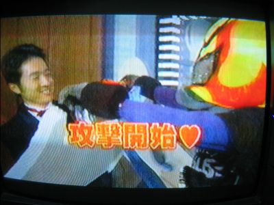 ハートマークつけながら(爆)アナに襲い掛かるカラスコ(爆)そういえば、試合中継のお知らせCMではことごとくカラスコに襲撃されていた松尾アナ。(『○月○日、○時から楽天対○○の試合を放送します』とか喋ってる背後から、ひょっこり現れたカラスコがアナウンサーを襲うというCMが何本か放送されていた)