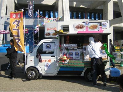 カラスコ舞台の隣に、カラスコが食べるためにつれてきた(爆)という噂のタコス屋が出てました。カラスコの名前がついてるほうを食べたのですが、美味しかったw張り紙がカラスコの顔ですけど、「カラスコ公認タコス屋」と書いてあります(爆)