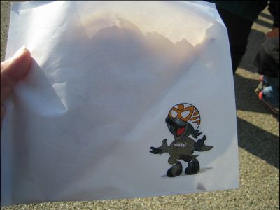 食べ物屋台のほかにも、各マスコットのブースがあちこちに。カラスコは中でコーナーを持つのかと思ってたら、外に舞台が組んでありました。プログラムが張り出してあって、全部こちらを見てたら中がさっぱり見れないんですが!(笑)