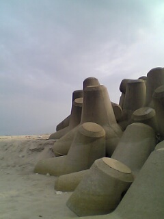波打ち際から離れた場所にテトラポッドが積んであったので、それに腰掛けてしばらく海を堪能しました。海はイイねーv