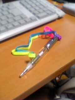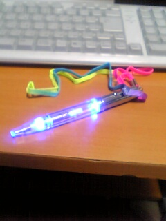 スイッチがついてるペンで、中に乾電池を仕込みます。すると7色に光る!というのが売り。スイッチ入れるとこんな感じに光る。
