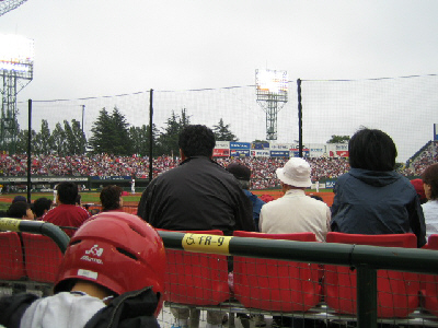 昼からは、フルキャストスタジアムに従兄と一緒にロッテvs楽天戦を見にいってきました。何でも、障害者のなんかの募集であたったらしくて、ロッテ側のフィールドコート席。従兄は車椅子、おいらは付き添いで入場。指定席なので指定された席に車椅子を止めましたが……、なんじゃこら。